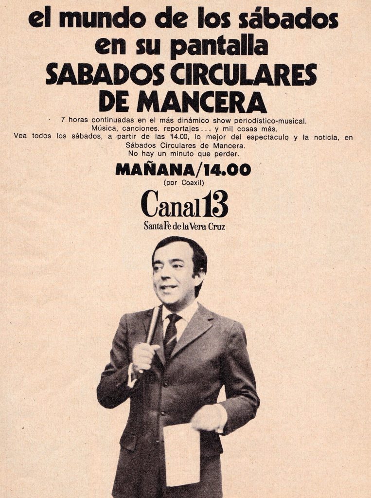 Not surprisingly, Mancera was known as «Mr. Television» due to his program «Sábados Circulares,» which aired from 1962 to 1974 and its high ratings. (QUOTE 4)