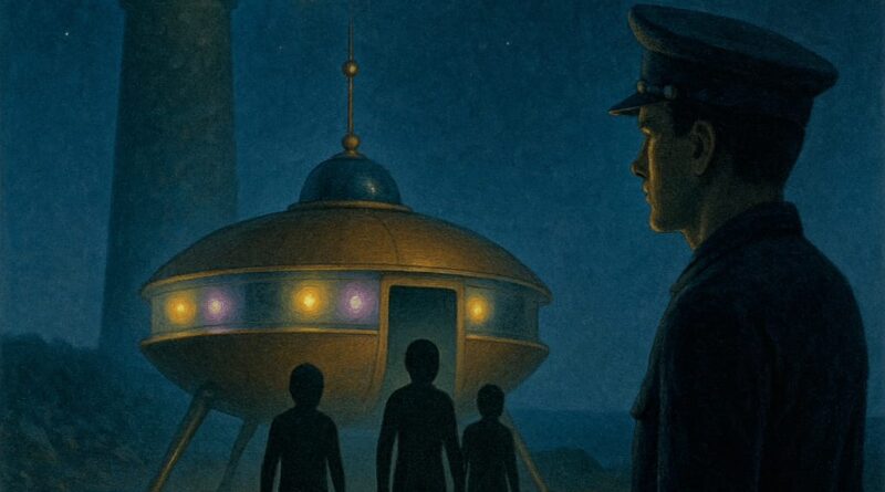 Upon entering, his companions realized something strange had happened (he was pale and still holding his weapon). Right there, he told them, «I saw a flying saucer.»